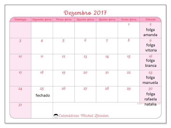 De segunda á sexta temos todas as massagistas disponíveis, somente sabado que temos escala de massagistas. Não trabalhamos aos domingos.